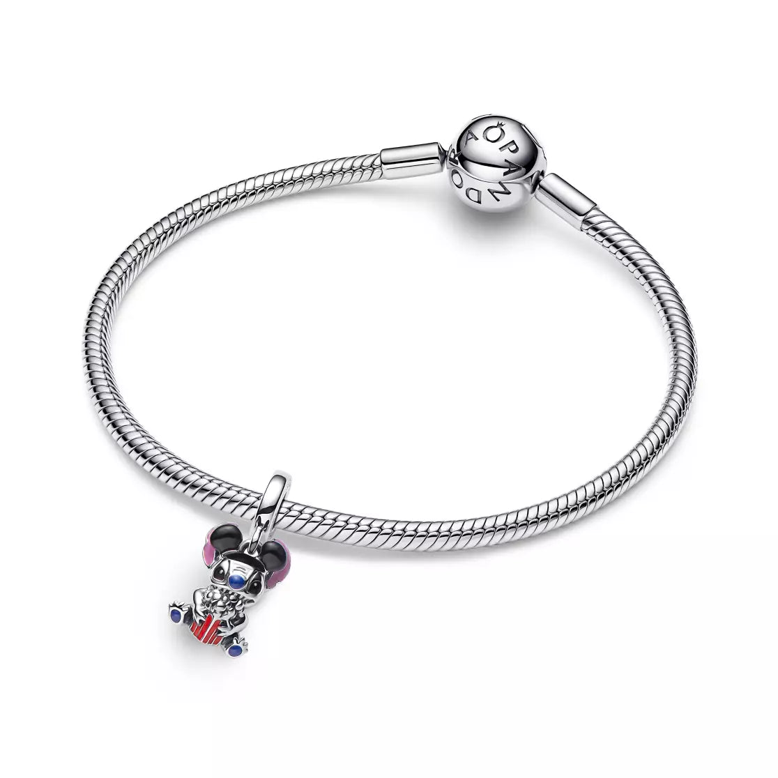 Dangle charm featuring Stitch in Mickey Mouse hat with popcorn